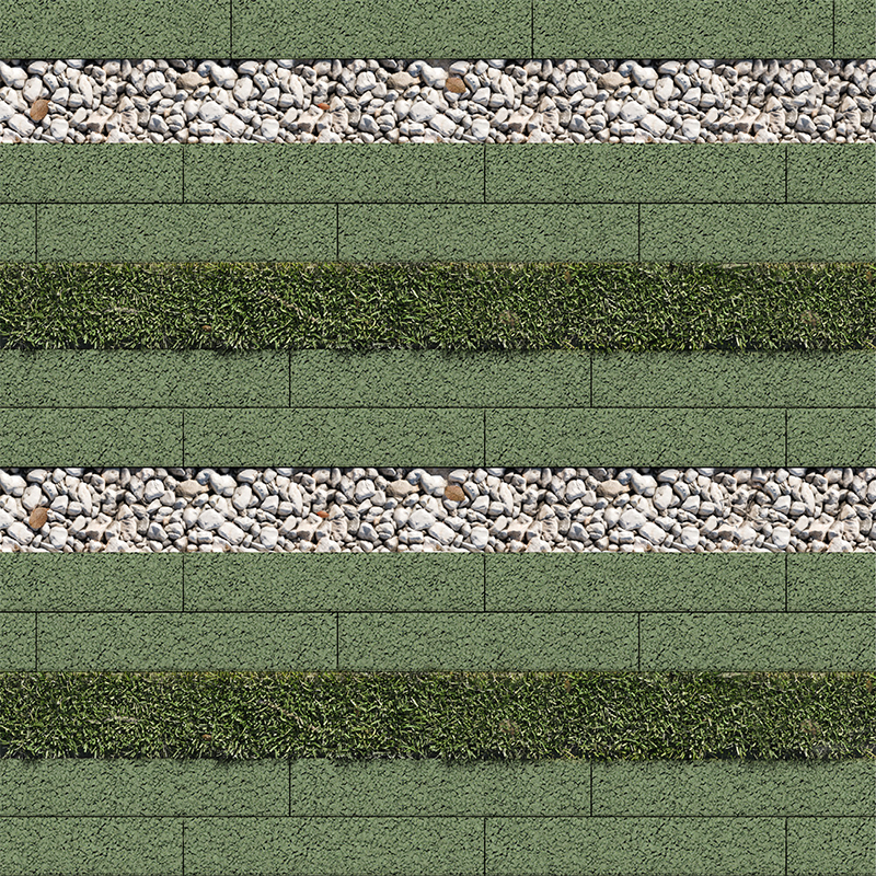 «Экоформа» состоит из бетонного элемента с уширенным швом, что позволяет сочетать бетонные плиты с натуральными материалами и растениями.