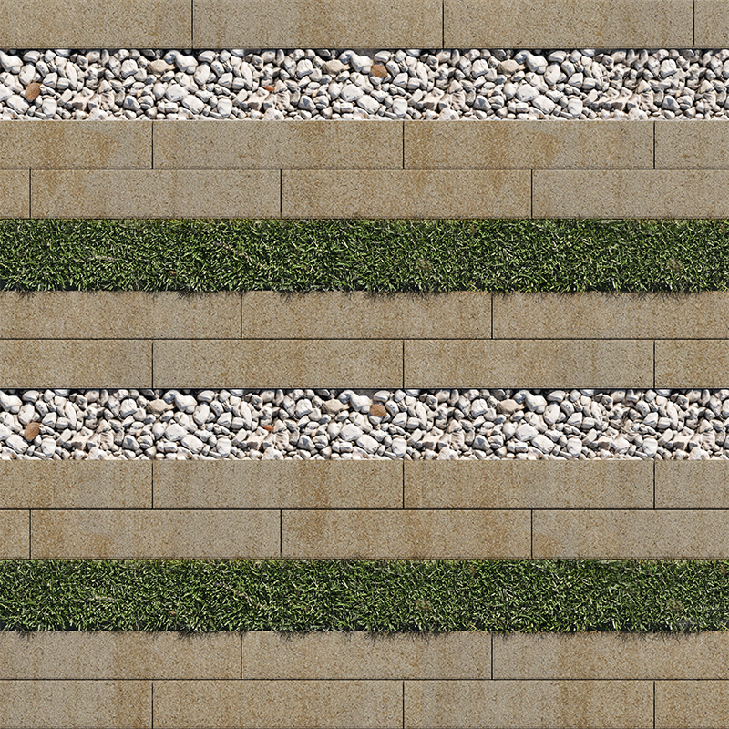 «Экоформа» состоит из бетонного элемента с уширенным швом, что позволяет сочетать бетонные плиты с натуральными материалами и растениями.