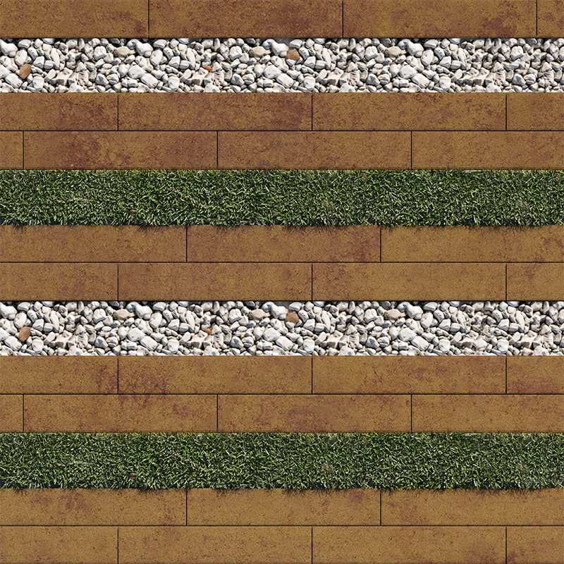 «Экоформа» состоит из бетонного элемента с уширенным швом, что позволяет сочетать бетонные плиты с натуральными материалами и растениями.