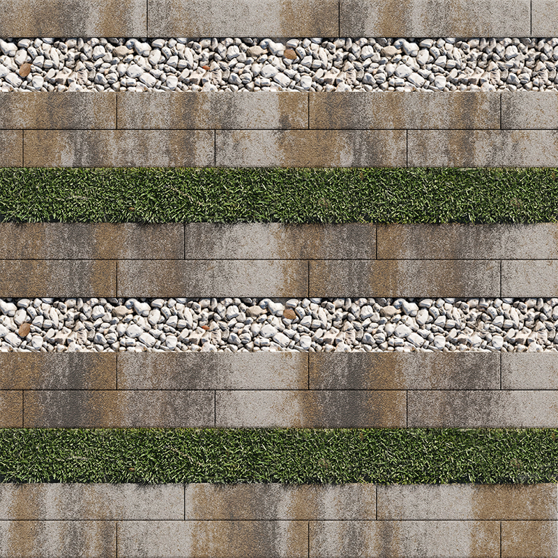 «Экоформа» состоит из бетонного элемента с уширенным швом, что позволяет сочетать бетонные плиты с натуральными материалами и растениями.