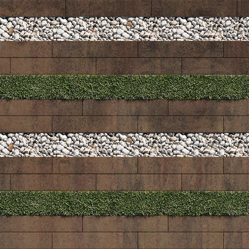 «Экоформа» состоит из бетонного элемента с уширенным швом, что позволяет сочетать бетонные плиты с натуральными материалами и растениями.