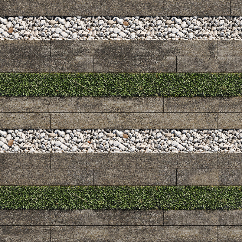«Экоформа» состоит из бетонного элемента с уширенным швом, что позволяет сочетать бетонные плиты с натуральными материалами и растениями.