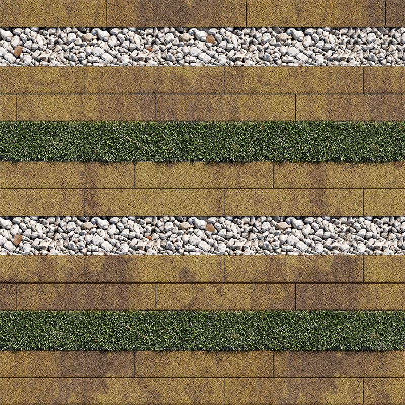 «Экоформа» состоит из бетонного элемента с уширенным швом, что позволяет сочетать бетонные плиты с натуральными материалами и растениями.