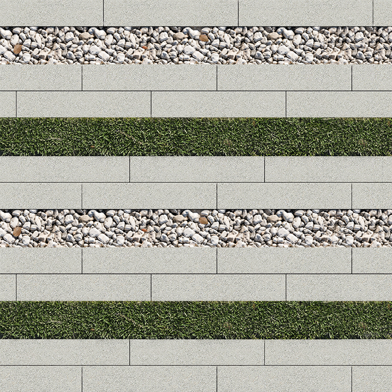 «Экоформа» состоит из бетонного элемента с уширенным швом, что позволяет сочетать бетонные плиты с натуральными материалами и растениями.