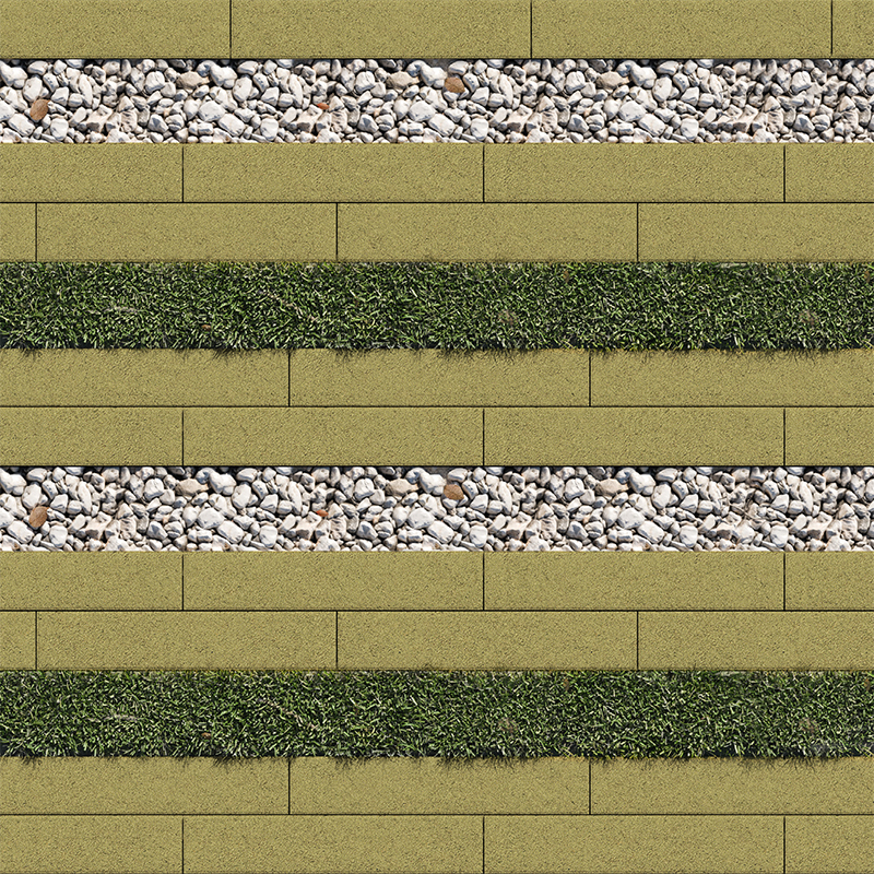 «Экоформа» состоит из бетонного элемента с уширенным швом, что позволяет сочетать бетонные плиты с натуральными материалами и растениями.