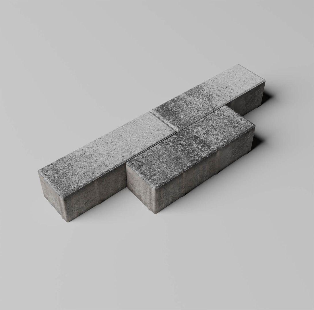 Тротуарные плиты Прямоугольник формата 300х100х80 мм изготовлены методом сухого вибропрессования бетонной смеси, имеют точную геометрическую форму, равномерные стыки, что обеспечивает простоту укладки. Большая степень уплотнения используемой бетонной смеси дает очень низкое водопоглощение продукции и повышенный срок эксплуатации.