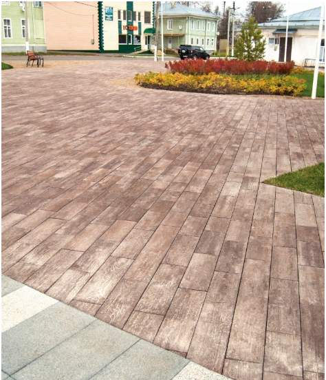Коллекция «Стоунвуд®» – уникальный эко-интеграционный инструмент ландшафтного дизайна. Мощение плитами «Стоунвуд®» сочетает в себе долговечность камня и естественность текстуры натурального дерева».
