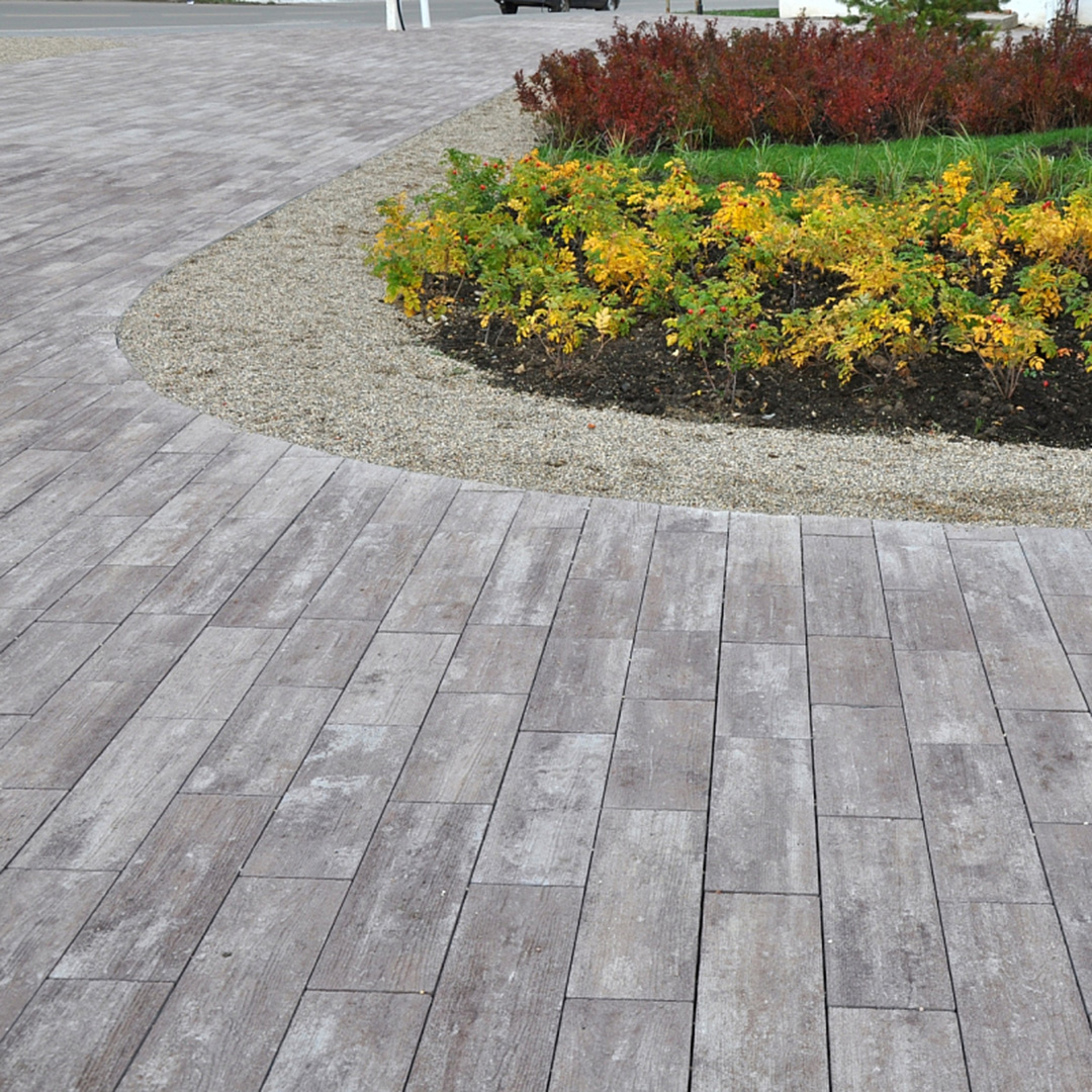 Коллекция «Стоунвуд®» – уникальный эко-интеграционный инструмент ландшафтного дизайна. Мощение плитами «Стоунвуд®» сочетает в себе долговечность камня и естественность текстуры натурального дерева».